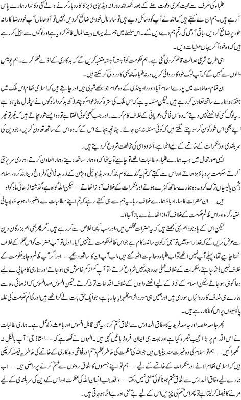 well na hi mey gov. key favor mey hun aur na hi jo Maddrasa Hafsah ki taleybaat ya Lal Masjid ka attitude hai us key favor mey hun....