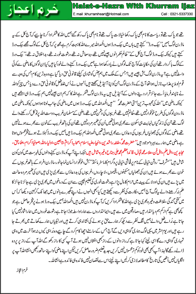 Thank u very Much Mask ... Bhot Zabardast Aallah Aap k lafzon main aur ziyada Taseer day ... Jab tak k aap k jaise writers is Mulk main mojood hain tab tak yeh qom jagti rahe gee aur agar kuch bhi na ker saki tu kam az kam apne khyalat ko ujagar rakhe gee ... aur us waqt tak ham per america jaisi halat nahien aaiey gee jab tak aap jaise aur masood aur rullz jaise writers un ko jhanjorte raho gay........