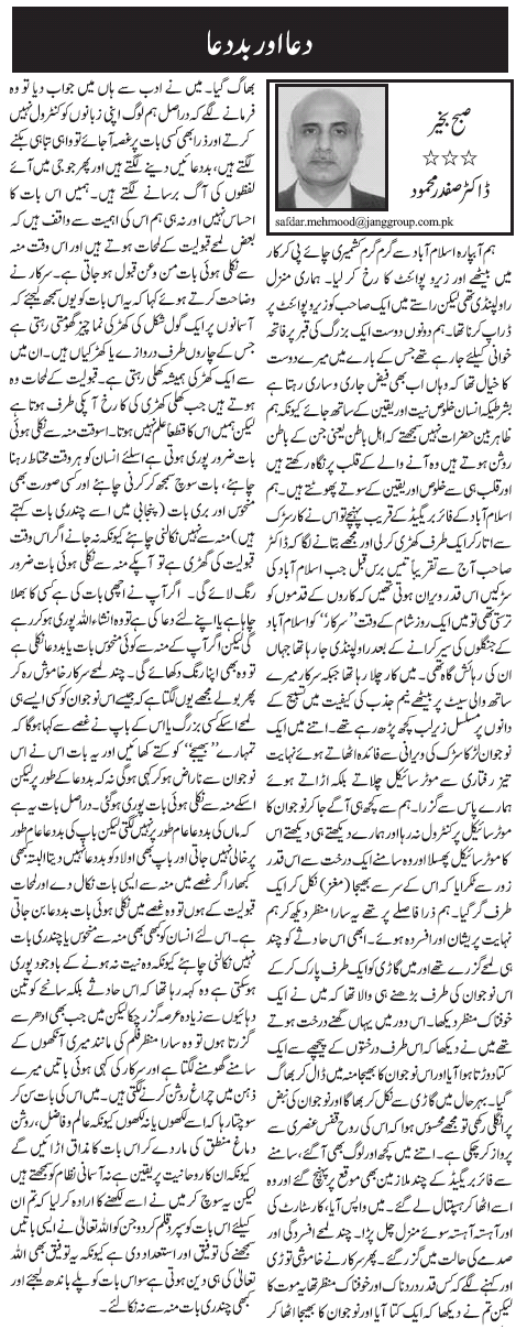Sirf du'a k maamley mey hi nahi balkey her choti si choti baat aur her barhi sey barhi baat kehtey huye insaan ko apney lafzon ka khayal zaroor rakhna chahiye, aur lafzon ki ehmiyat ka ehsass zaroor hona chahiye..." Obstacles are what you see when you take your eyes off your goals "