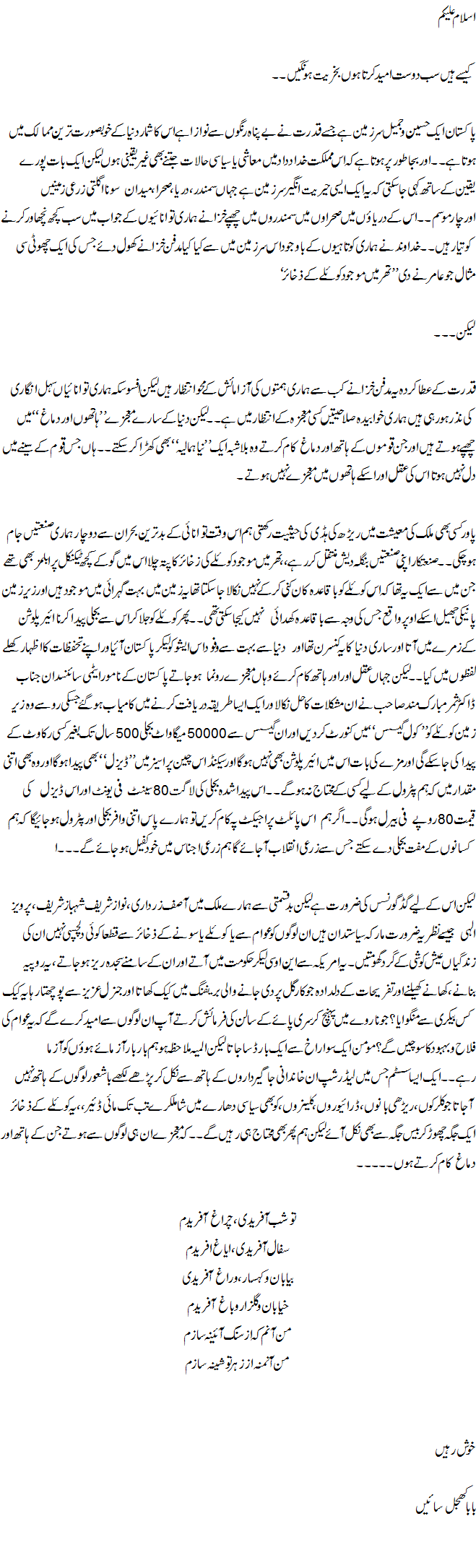 Hamaray Koal ke resources ko utilize kerne k liye sirf 4 Billion dollar ki investment ki zaroorat he. Jo ke kisi tareekay se Pakistan se na source ho rahay hein aur na hotay dikh rahay hein. Waja - non-seriousness of our political leadership. Lekin hamaray leaderaan "Jamhooriyat ke istehkaam" k lakeer peetnay se aagay he nahi aa rahay.