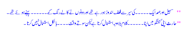 1)Suhail aur Samad aik chashmy ki sair say lutf andooz ho rahy thy dono ny kaly rang ky chashmy pehny hoay thay