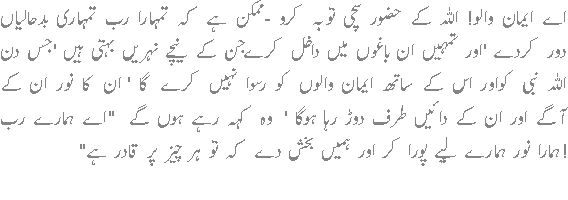 main samajhti hoon keh sirf lagi bandhi Nimaaz perhnay kay bajaye us kay sahih tareeqay say aur samajh kar perha jaye.......aur Quran Paak bhi sirf Arbi main nahin perha jaye....kiun keh Arbi her kisi ki samajh nahin aati........main tarjumay kay saath Quran perhti hoon...ALHAMDOLILLAH......aur main nay khud tabdeeli mehsoos ki hai.........waja sab jantay hain keh Quran Paak humari zindgi kay her mamlay mein hamari rehnumai karta hai........