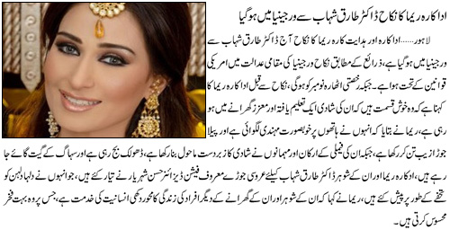 Mubarak ho Mr khan innki shaadi ki....barre dinhuhn se aap reema ki shaadi ko discuss ker rhe the...mein ne samjha bass shosha hi he, woh nhi kerti shaadi..magger aap ne kammal ker diya..andher ki khabr thi aap ko!!!!!!!!!!!!