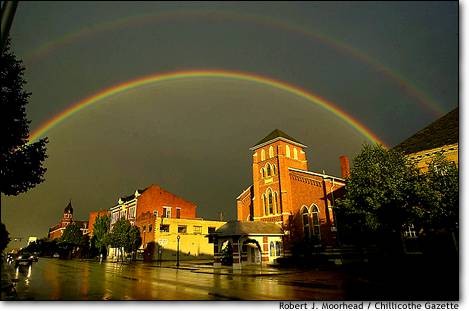 An afternoon storm brought a double rainbow over downtown Chillicothe, Ohio, on May 27 2005....