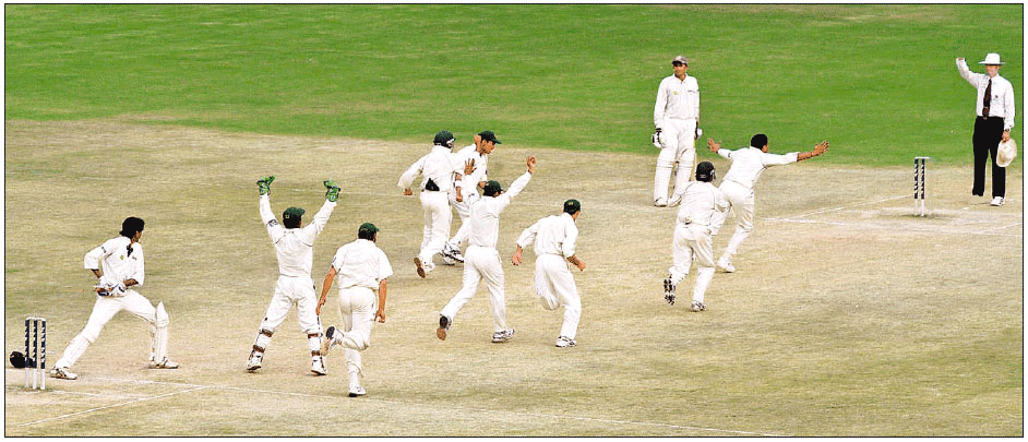 Is picture ko ghaur sey dekhein, aik aam si picture hai (yeh Banglore Test ki picture hai jahan last wicket per pakistan ney match jeeta tha) - Is picture mein 5 jaghon per ghalti hai - kya aap un 5 jaghon ki nishan'dehi kar saktey hain?