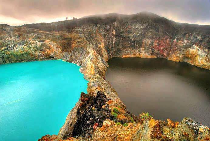 The Lakes of Mount Kelimutu, Indonesia are considered to be the resting place for departed souls, the lakes are locally referred to as "the lake of evil spirits". All 3lakes change colors from blue to green to black or red unpredictably.