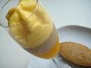 Add mango puree and sugar to the yolk and prepare over a pot of hot water till the sugar dissolves.