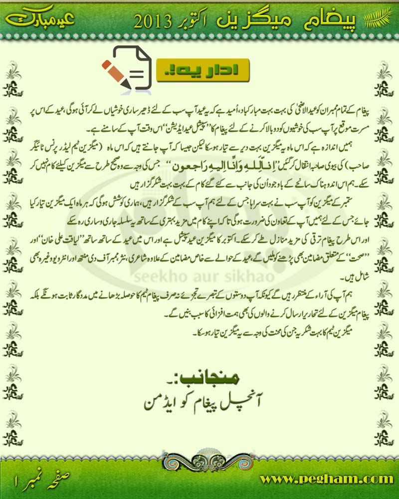 october Magazine (Eid Edition) aap sub may samnay hia :--d