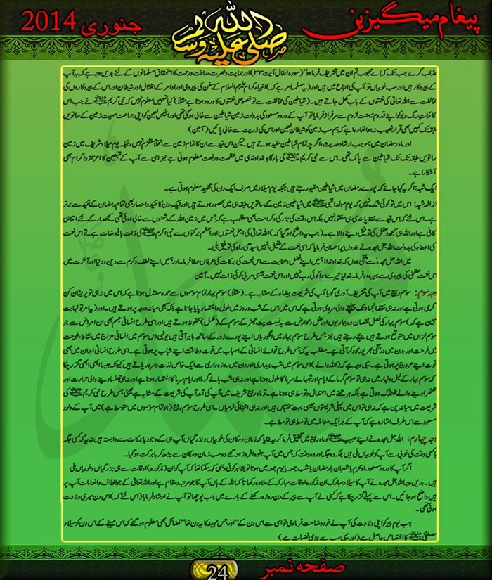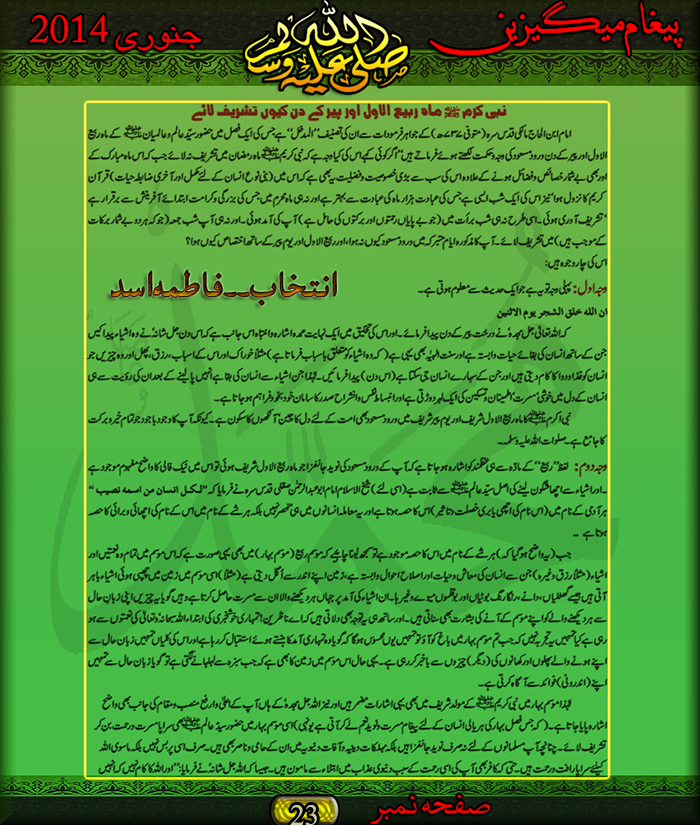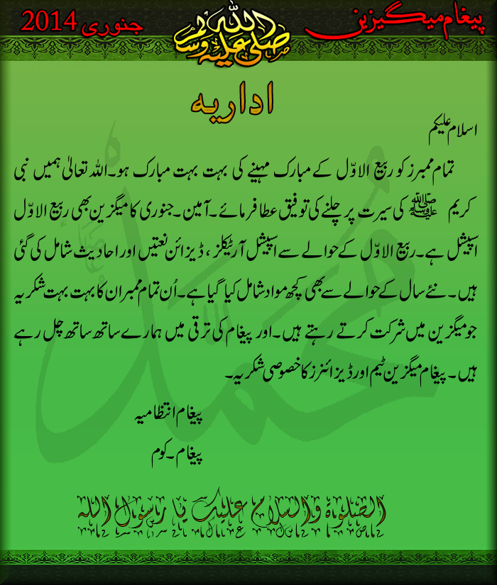 January 2014 pegham Magazine (Rabee-ul-Awwal special)
