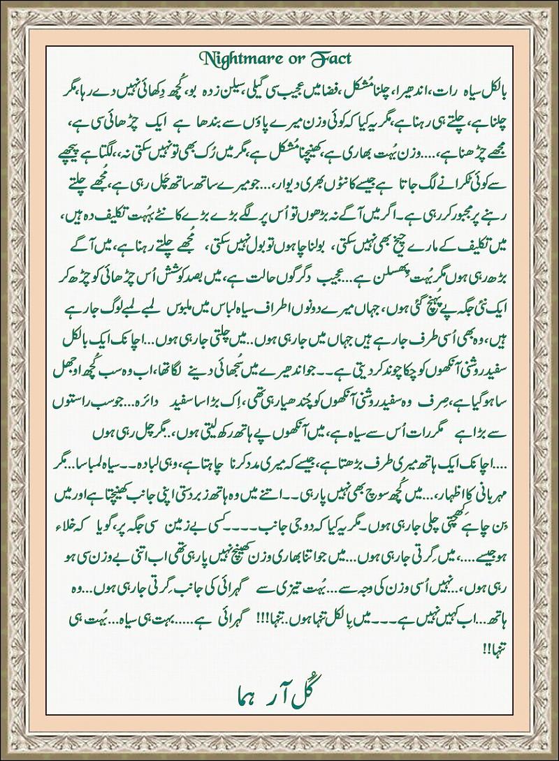 Zindagi bhi to aik aisa hi bojh hai Gul jissey har haal mein jeena hai, chahey ham chahein ya na chahein, chahey ham kisi ka sahara dhoond lein ya na - zindagi bhi to aik bojh hai aur aik saraab hai - bohat bada aur khatarnak saraab.... yehi to woh bojh hai jo paoun ki zanjeer hai ... Ghalib ney kaha tha: