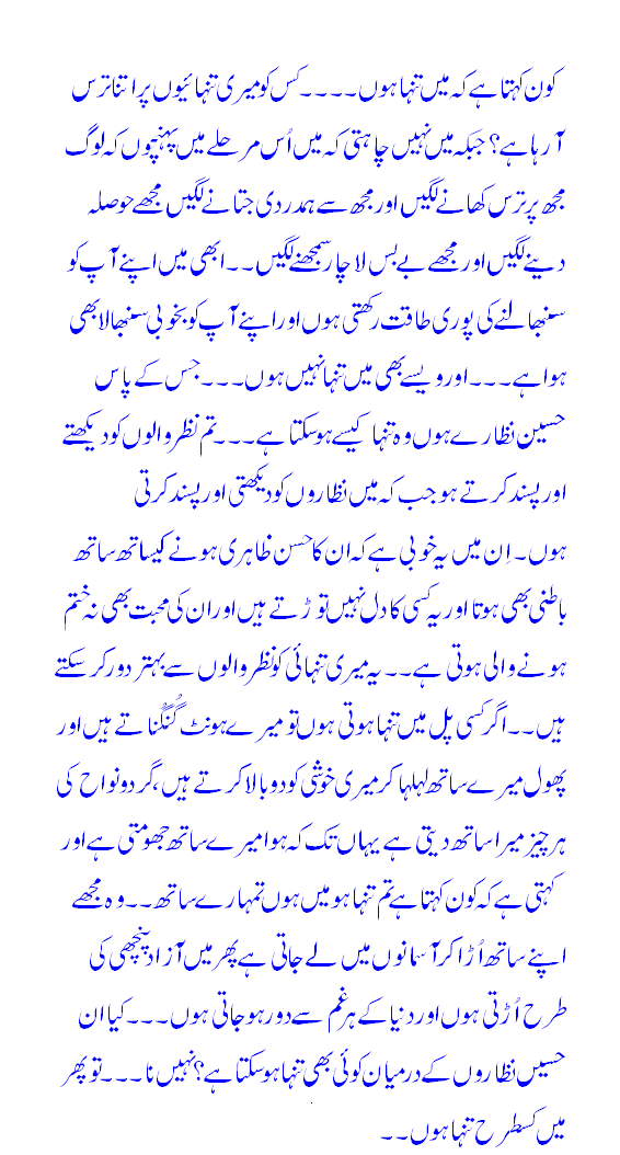 lekin ye sab kuch hotay huay bhi kabhi kabhi tanhai ka ahsaas hota hai