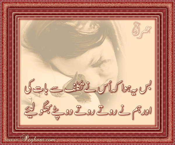 Kia baat hay Mani16, bohat hi achi shaaeri aur uss per alfaazon say insaaf karti huyi tasweer, aansoo kay saath saath ankhoon ka kaajal bhi beh chala, waqayi berukhi kis qadar takleef deti hay aur achi khassi khoobsurat ankhoon ko purnam kar daiti hay... light pink aur piyazi color ki combination waqayi lajaawab hay, keep sharing your beautiful art work and good selection of poetry :)sigpic