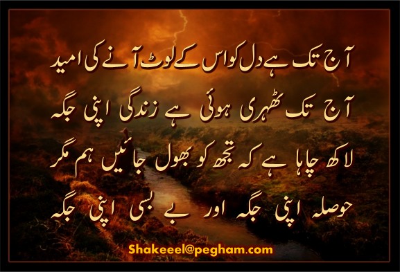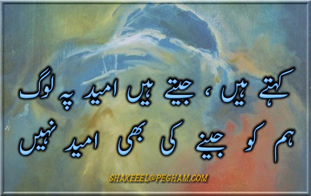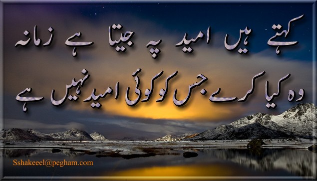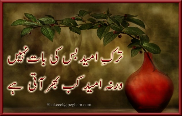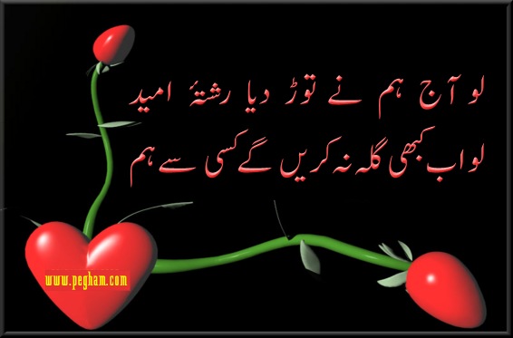 Rishta hum ne nahin Shayer ne tora ho ga apni ummid se.......Originally posted by ummid View Postlo aaj hum ne toor diya risht-e-ummid???????