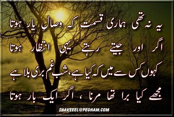 buht khubsurat Shakeeel bro.... aise hai khubsurat ashaar ka sharing jari rakien.. be blessed.