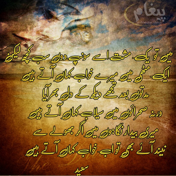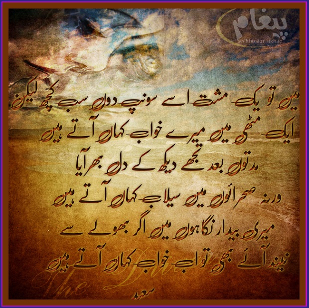 aap shair k elawa koi ghazal/nazam bhi design kar saktay hian lekan us ka mozoo khawaab hi hoo:thmbup: