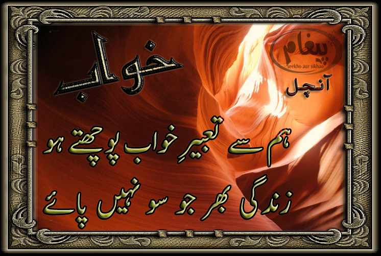 aap nay aisa shair design karna hai jis main lafz "khawaab" ata hoo :thmbup: