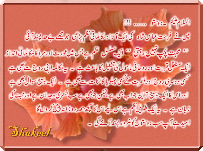 Re: Mohabbat Chup Nahin Rehti - by Farhat abbas shah