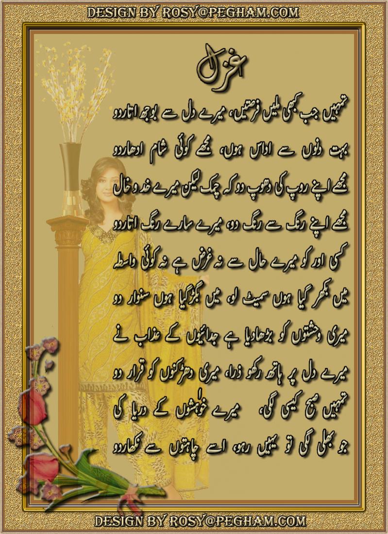 Wah Rosy jee. bohat hi khoobsurat design hay aur color combination is marvellous... shaaeri ka bhi jawab nahin... kul milaa kay bohat hi achay andaaz main aap nay designing ki hay, well done :)