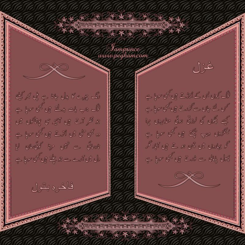 wah.... wah wah ...mairi fav ghazal hai yeh ..... aur aap nay kia desiging ki hai... bay had khobsorat andaaz ..:clap: