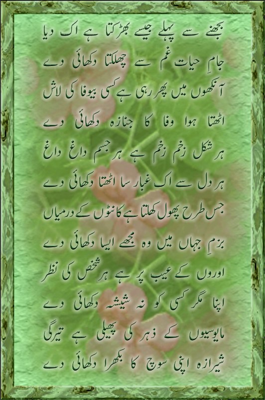 Salam to all friends, and thanks .............is nazam ka page 8 & 9 pesh kar arah hun, is ke total 14 pages hain. umeed hai aap ko pasand aayi ho gi.