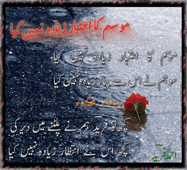 bahot Khoobsoorat baarish kaa effect hai. great job. par shairi itni ziyada ta'sssur nahiiN chhoRtii...shaa'iri kamzor hai :(