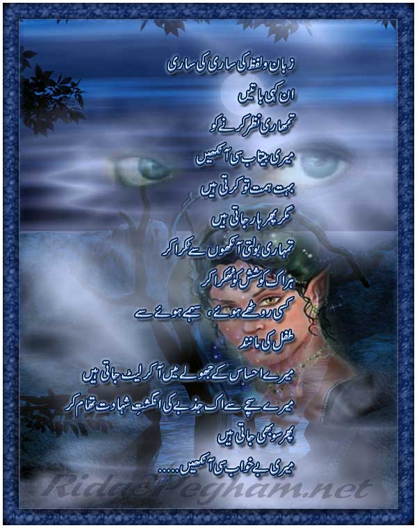 Nice work ............as Aania said text needs some more work ....its kinda fogy ........ :)Mainda Ziker Vi Tu'n, Mainda Fiker Vi Tu'nMainda Zoaq Vi Tu'n, Vajdaan Vi Tu'nMainda Aval, Akhir, Ander, BahirZahir Tey Pinha'an Vi Tu'nMainda Bakht Tey, Naam Nishan Vi Tu'n