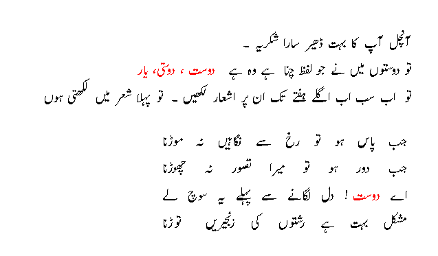 Re: Is Hafty Ka Word Dost/Dosti