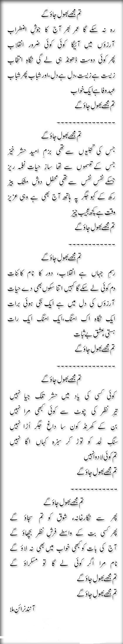 buht umdhaa or khubusart lekha hai tum mujhy bhool jaogi .. :clap: