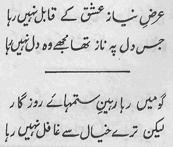 کہا، " میں صید ہوں اُس کا کہ جس کے دامِ گیسو میں