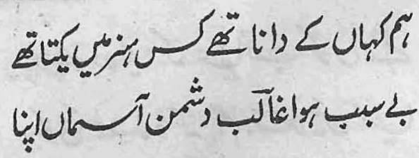 Insha Allah bohat jald main ghalib ki aik ghazal yahan post karon gi,balke main koshish karon gi ke is silsilsy ke ba'ad bhi dewaan-e-ghalib ko PG pe mukammal karon.Ghalib waqai GHALIB hai.Legend shair hai.