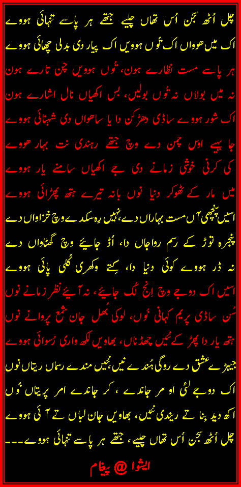Re: Chal uth sajna us thaan chaliye