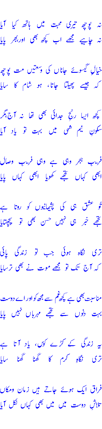 فراق صاحب حسن زیست سے محروم انسان کے غموں کو سینے سے لگائے اور درد