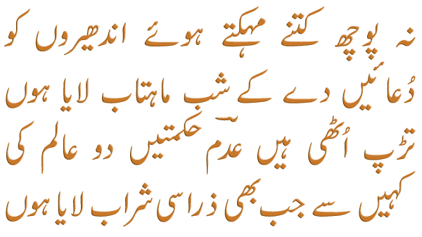 namaaz-e-shauq to waajib hey be'wazu hi sahii...
