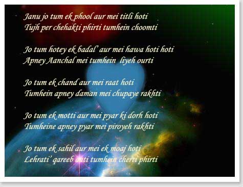Khoob likha mohabbat sai bharpoor likha likhtey rahyeh share kertey rahyeh khush rahyeh :)