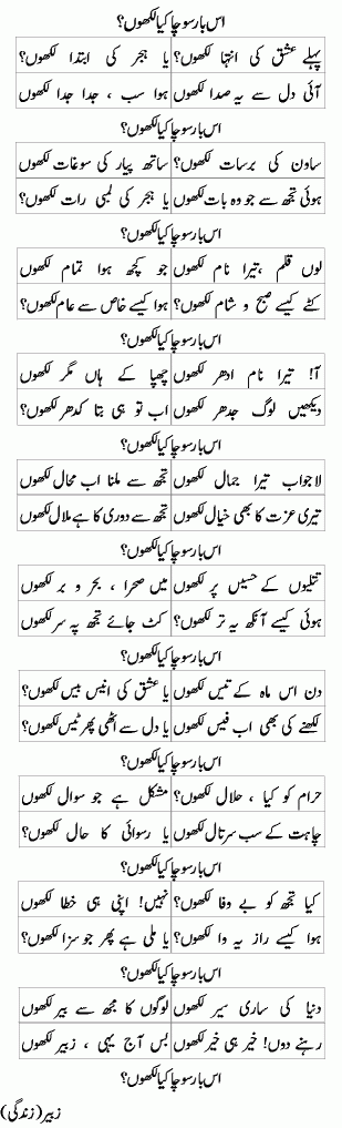 humaray Zubair bhai ki kavish jinhain aap (zindgee) kay nick say shayad pehchantay bhi hain :wk