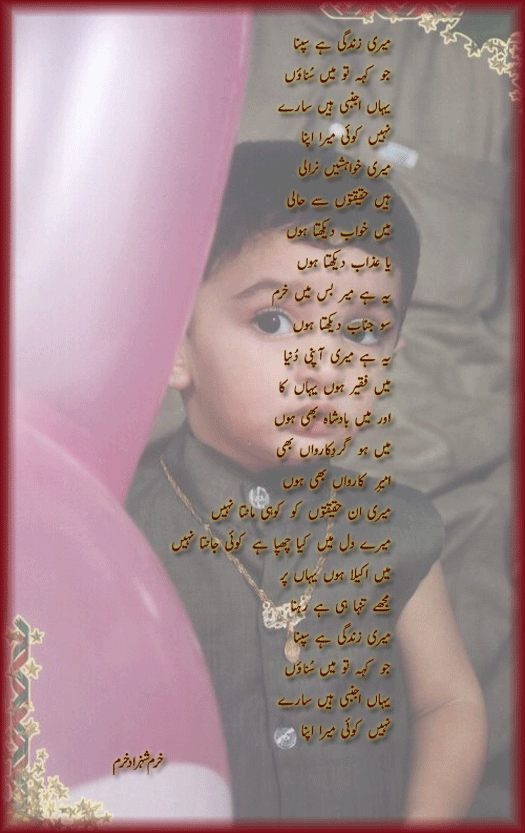 Bohat achi nazm hai aur present bhi achay tareeqay say ki haiThori si alfaz ki ghalitian hain nazm mukamil kar kay aik nazar doura lia karain to behtar hoga.