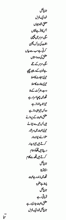 Re: Taaj Mahal Khud Aik Ghazal