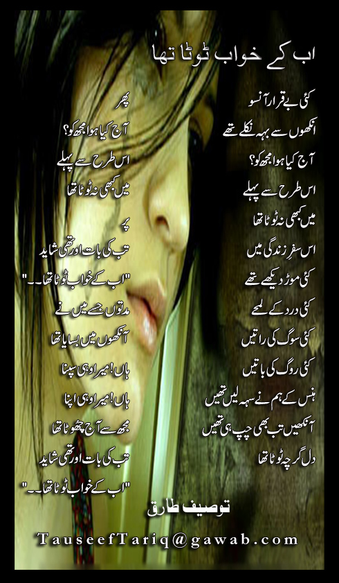 "aur gudia toot gai ke baad " jo nazam post kernain ka irada thaa us ko "skip" ker key filahal apna taza klaam