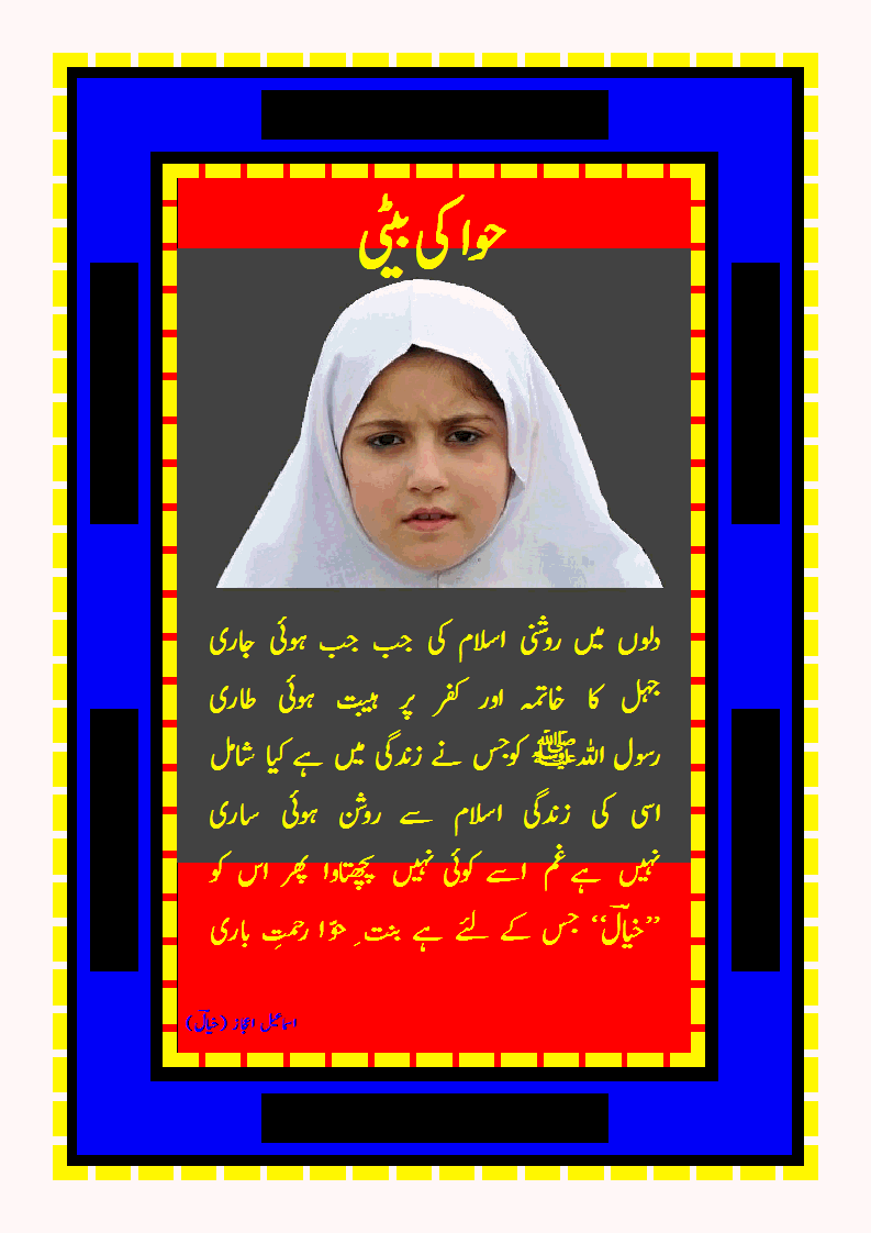 "Khayaal" jiske liye hai bint e Hawwa raHmat e baaree