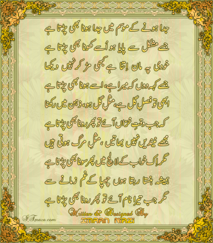 Dosto in me se 2 ghazalz tu ehle design section me post ho chuki hain tu me ne socha k yehaan bhi ker di jayen