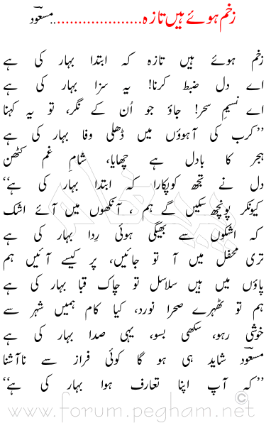 Zakhm huwey hain taazah key ibtida bahar ki hai
