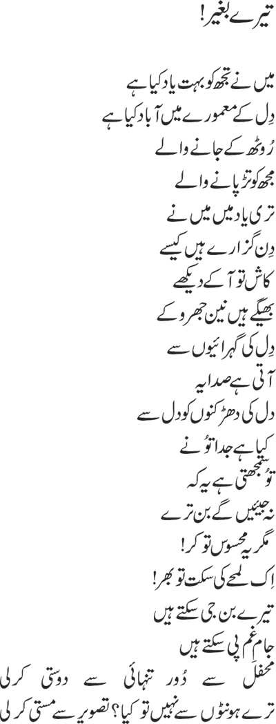 ik lamhay ki sakt tu bhar...Teray bin jee saktay hain...