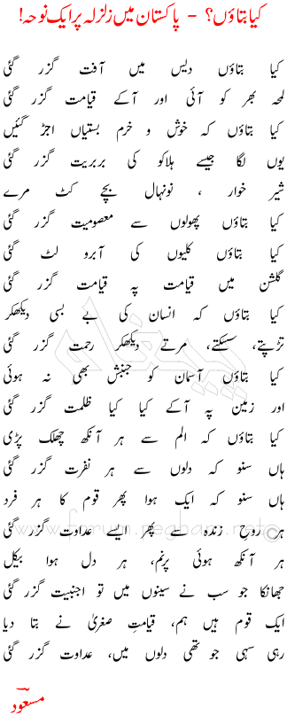 Kya Btaoun? - Pakistan mein Zalzilah Per Aik Nooha
