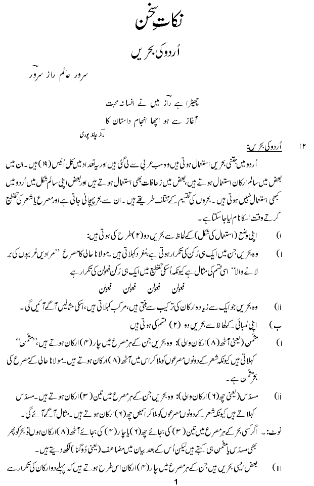 ab koii yeh na samjhe k maiN 'ilm-e-'urooZ ke Khilaaf huN. yeh 'ilm bahot soodmand hai aur zaroorii bhii hai seekhnaa magar vo sho'araa jinheN yeh 'im dushwaar lage vo maayoos na hoN...unke liye aur bhii raaheN vaa ho saktii haiN.
