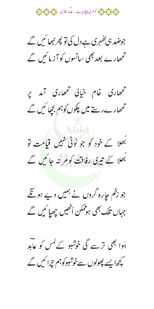 maashaa Allah bohot Khoob janaab buKhaaree SaaHeb ke liye daad aur aap ke liye shukriyahOriginally posted by Reds View Postہوا بھی ترسے گی خوشبو کے لمس کوIsmail Ajaz (Khayaal)