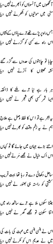 • AankhoN mein aansuoN ko ubharne nahi diya