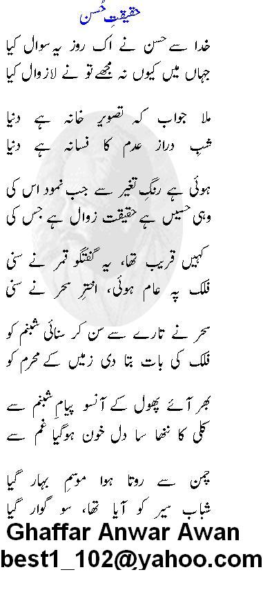 bahut bahut achhi poem Iqbal (RAH) ki theory ka kya hi kehna, i will compose this one as soon i get my pc back