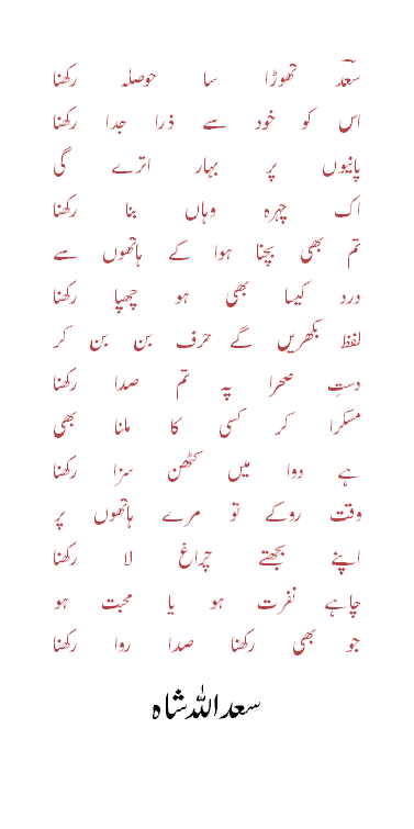 Saadulla Shah sahib ki yeh ghazal mujhey bari pasand hai :)
