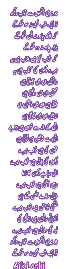 Nehayet hi khubsoorat kalam share kia hey. AIK LARKI aap ka behadd SHUKRIYA.