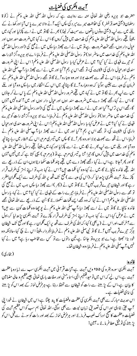 Re: Ayat-ul-Kursi Ki Fazeelat